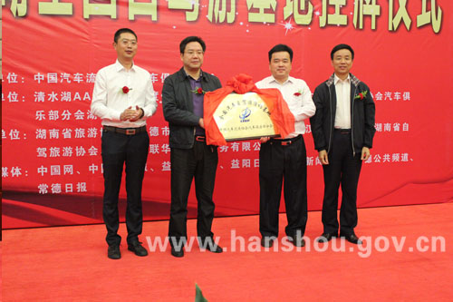 9月27日下午,清水湖“全国自驾游活动基地”挂牌仪式在清水湖国际会议中心正式举行。秘书长张士立、湖南省旅游协会秘书长王舜良、常德市旅游局副局长施才明、副县长朱进友等出席仪式。