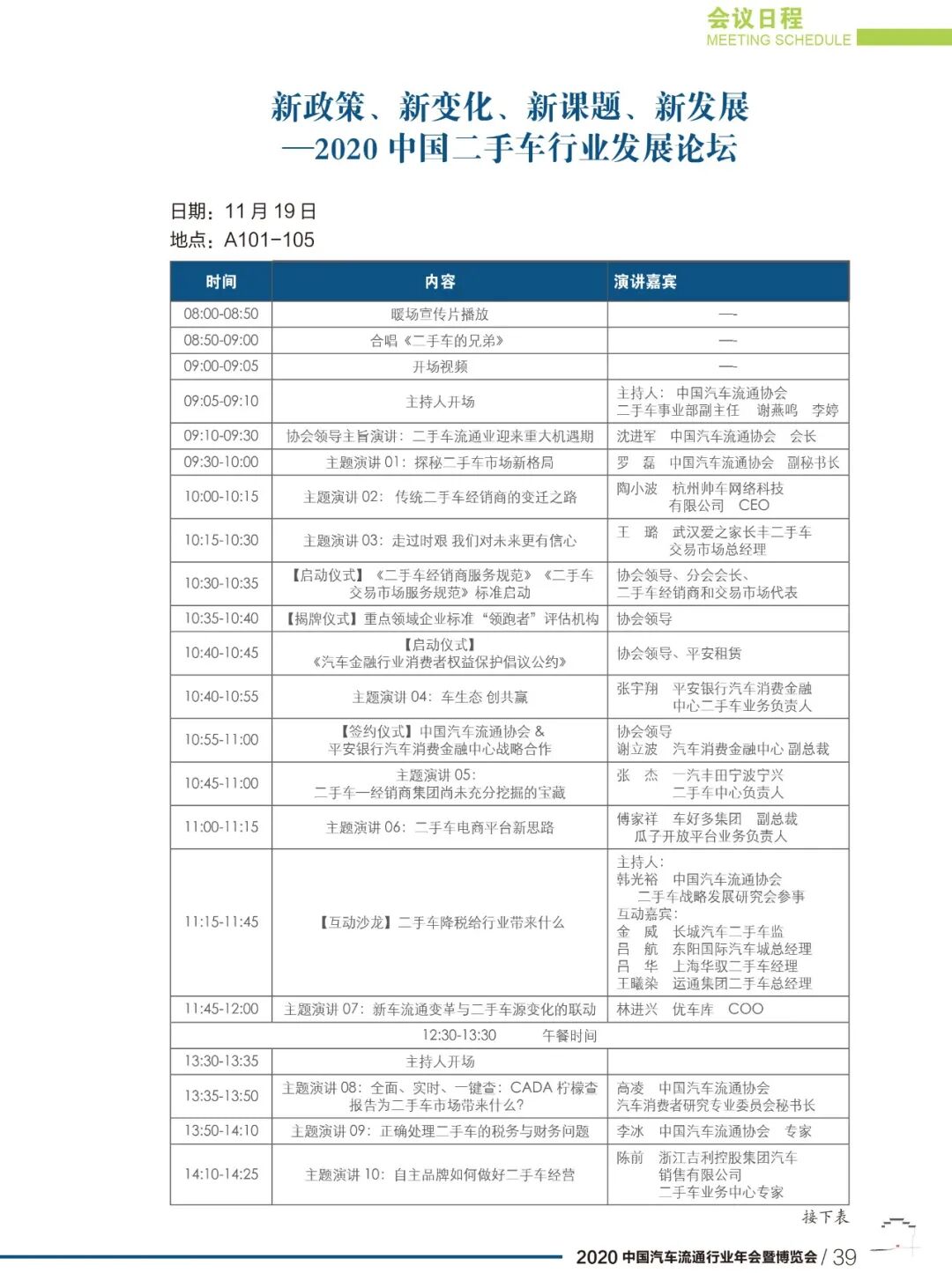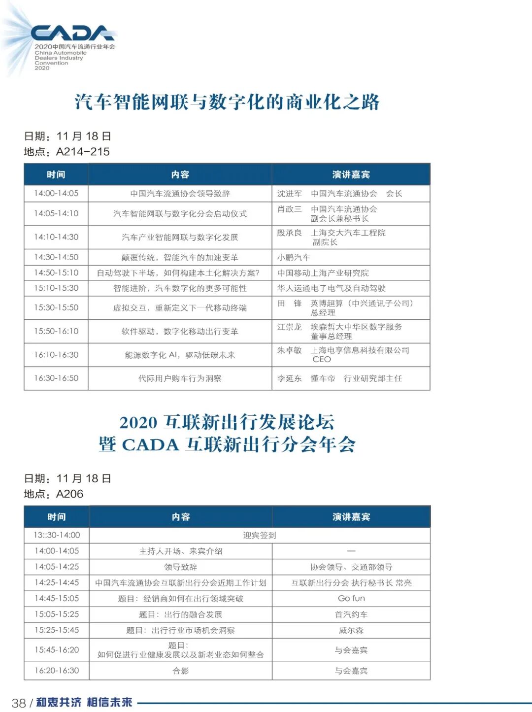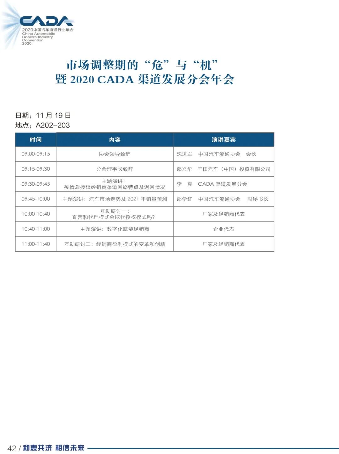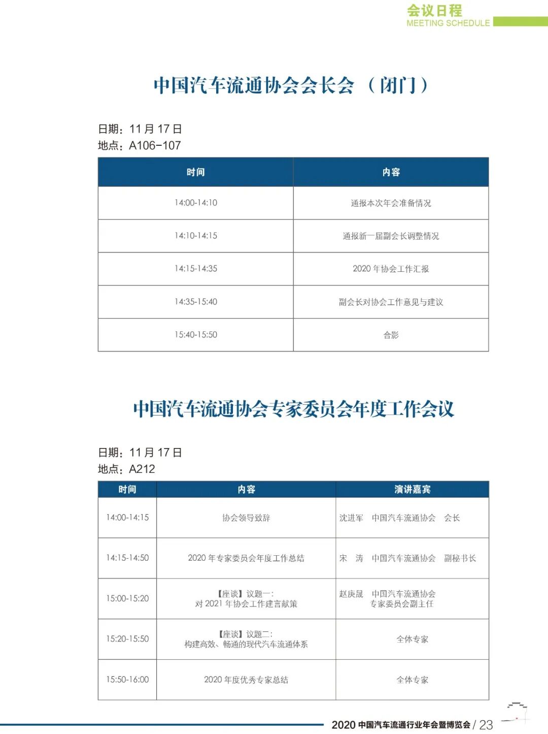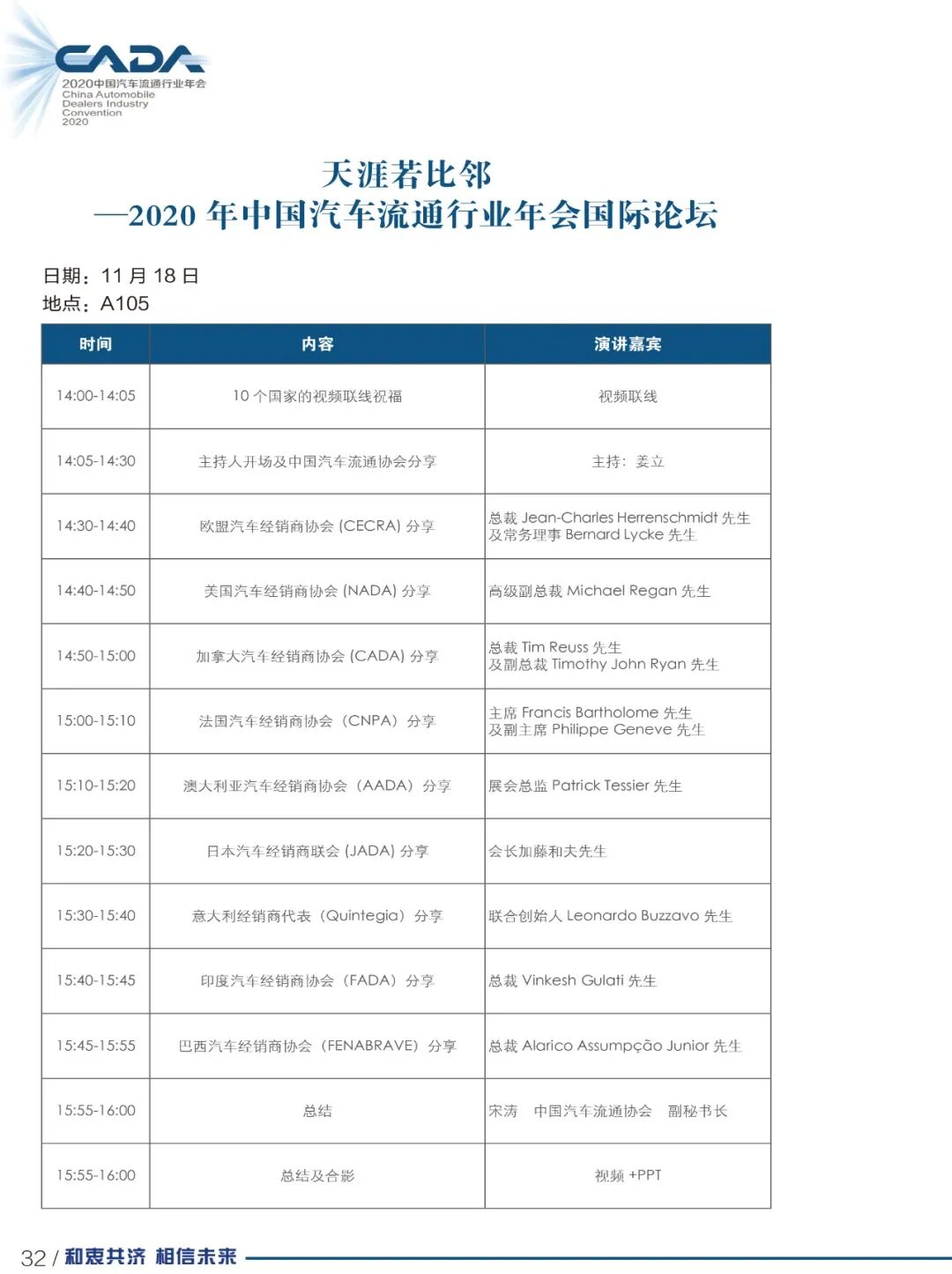 由中国汽车流通协会主办的“2020中国汽车流通行业年会暨博览会”将以“和衷共济 相信未来”2020年11月17-19日在苏州国际博览中心举办。迄今为止,所有会议议程全部确认,正式发布如下:
