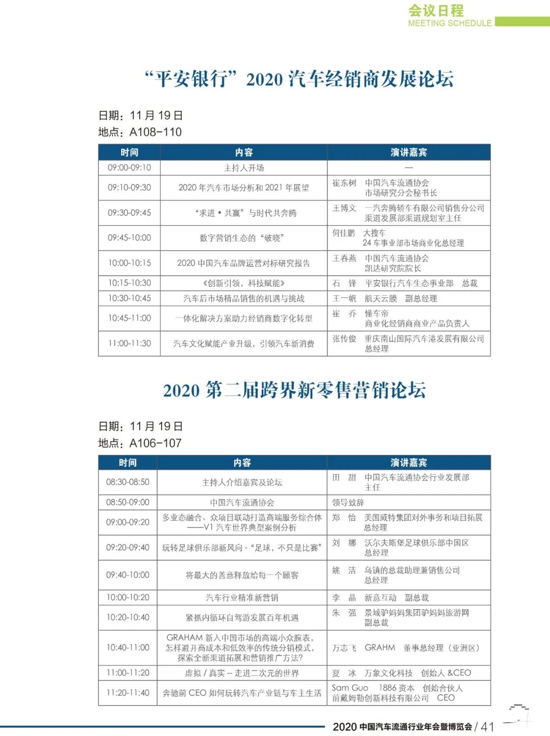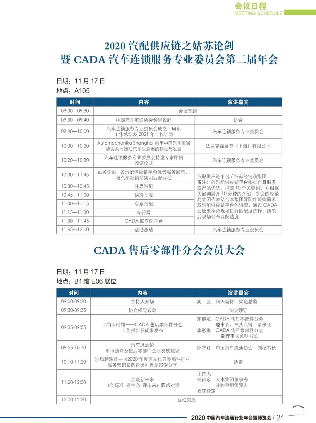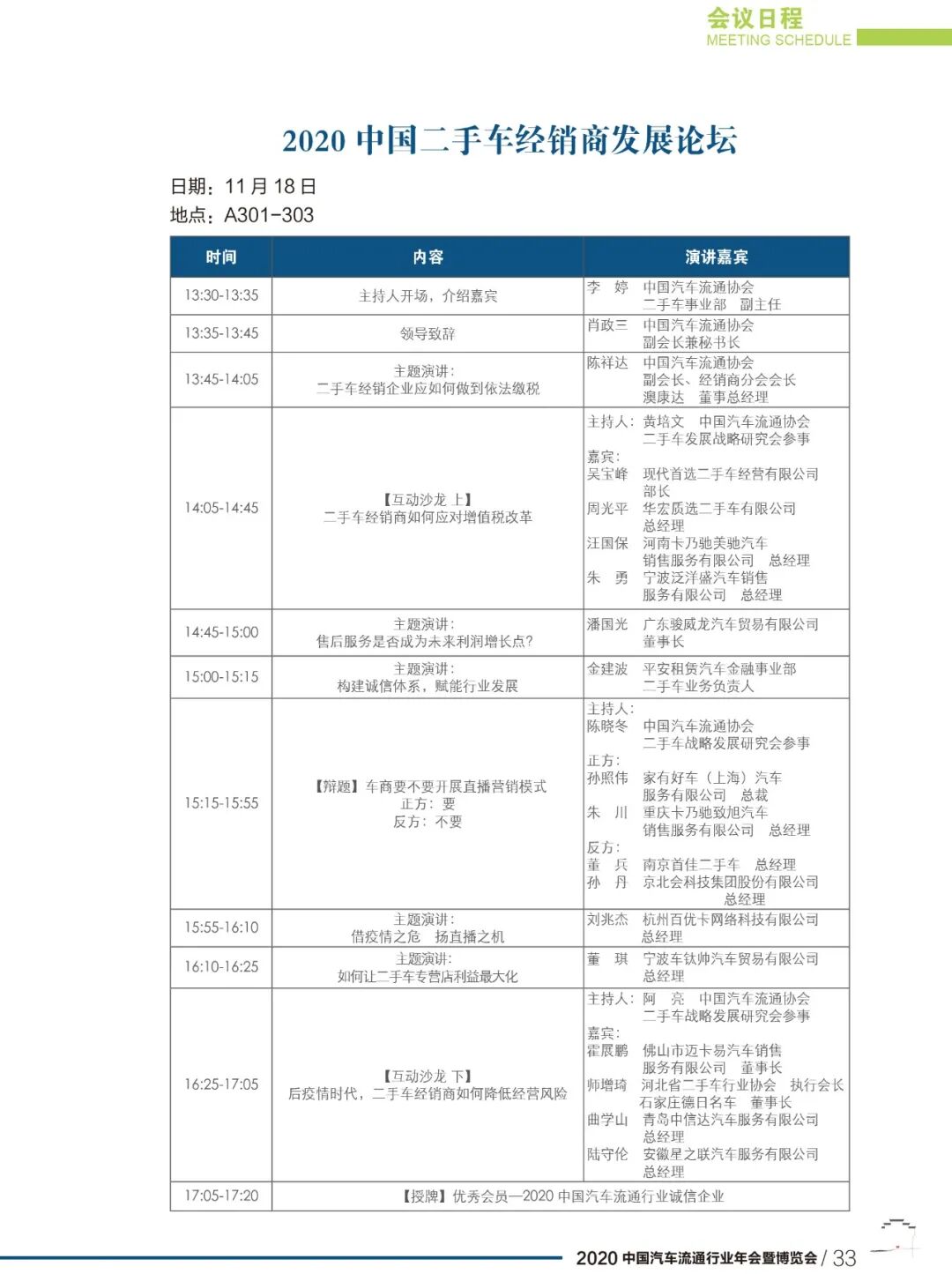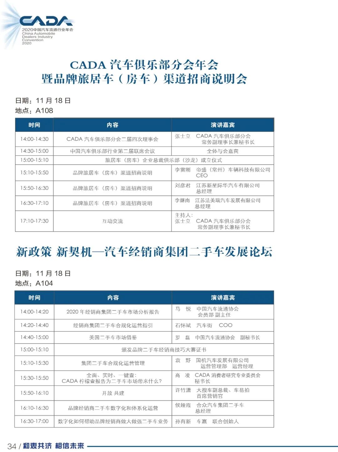 由中国汽车流通协会主办的“2020中国汽车流通行业年会暨博览会”将以“和衷共济 相信未来”2020年11月17-19日在苏州国际博览中心举办。迄今为止,所有会议议程全部确认,正式发布如下: