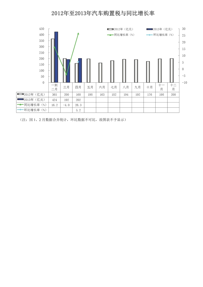 2013年4月汽车类消费占比与车辆购置税统计数据