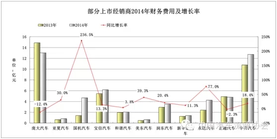 受到库存压力增加与企业经营规模扩大的双重影响,报告期内各上市经销商集团融资成本普遍增加,十一家上市经销商集团融资成本平均上升14.99%。