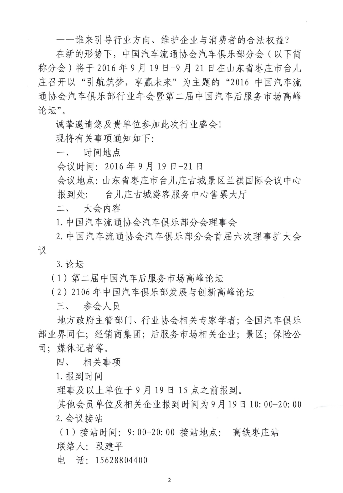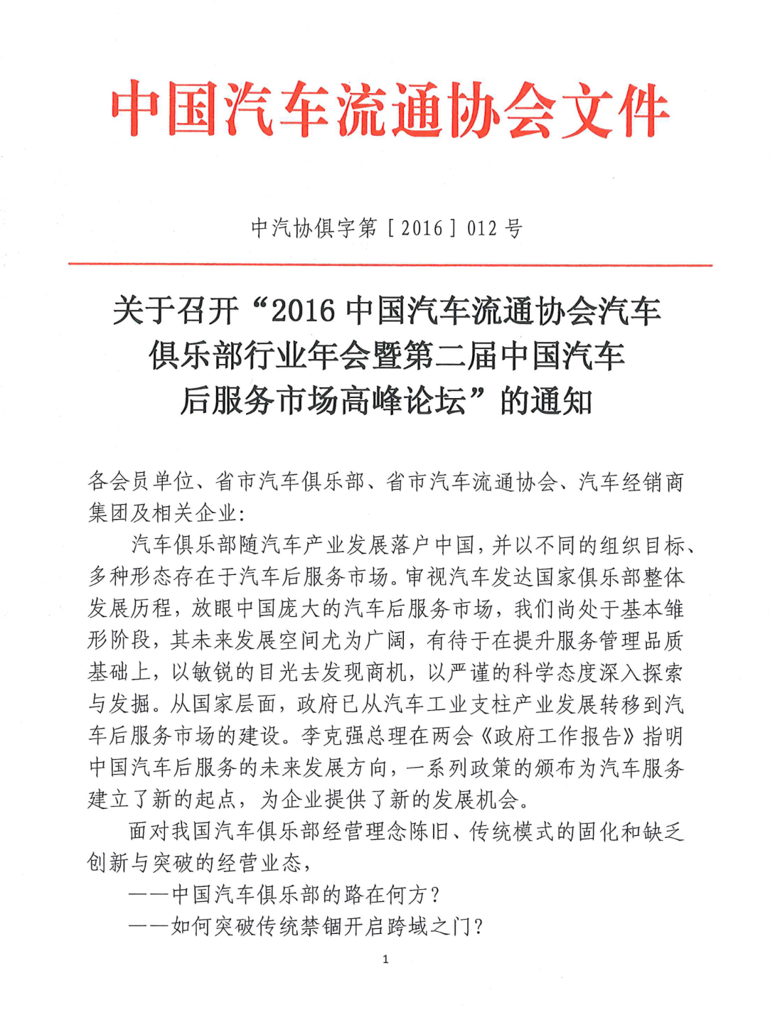 关于召开2016中国汽车流通协会汽车俱乐部行业年会的通知