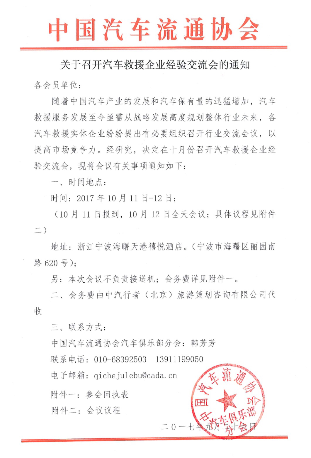 关于召开汽车救援企业经验交流会的通知