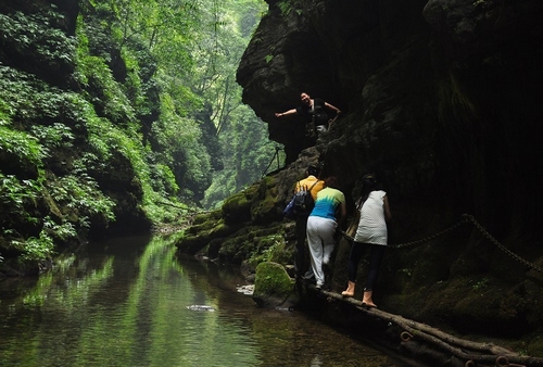南津关大峡谷位于宜昌西陵峡的深山里,是虎牢溪的源头,属于封闭的原生态峡谷环境,峡谷全长12公里,谷内飞瀑成群,森林密布幽深奇特,自成小气候体系,典型峡谷气候孕育了南津关大峡谷绝美的自然景观。因为进山的盘山路很狭窄,而且路面状况非常差,中大型车辆根本就不能进山,只有当地的班车一天两班进出,所以这么绝美的峡谷不太为外人所知。