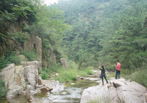 走进金鸡峡,总给人这样的感受。从莱芜市辛庄镇桃峪村往南,沿着曲曲折折的小径,走不远即可到达这片胜境,可谓“曲径通幽”。峡长约五公里,景点各异,千姿百态。九曲十八弯的峡谷、遮天蔽日的松林、层层叠叠的山峰、缭绕山涧的薄雾,构成了一个亦真亦幻的世界。大山舒展着有力的臂膀,显得伟岸而威严,如同一个伟丈夫。