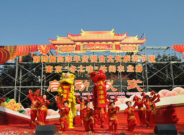 尝慢城年菜、购生态年货,品高淳民俗、享幸福年味。2013年1月19日,高淳老街鼓乐喧天,金狮欢腾,现场气氛热闹非凡。第四届高淳年货慢食文化旅游节暨南京“冬之味”休闲农业游启动仪式在此隆重举行。