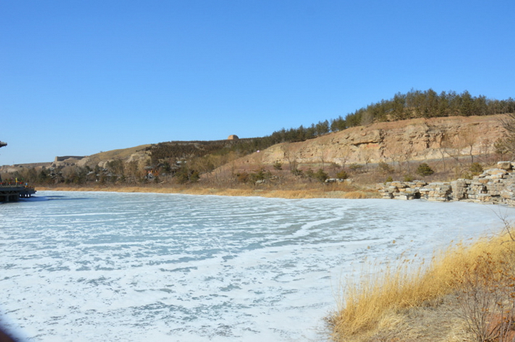 这是景区内一个湖面,冰面厚实啊,这个真可以走!