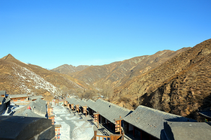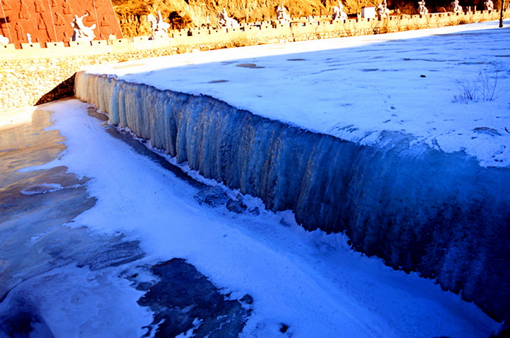 这是条河,不过成冰河了。据了解,雁门关一年四季,只有6、7、8三个月是看不到冰雪的。。。