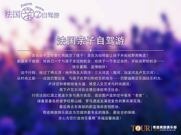 奇迹商旅俱乐部暑期法国亲子自驾游