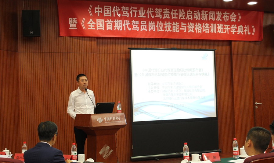 2015年5月16日,由主办的《中国代驾行业代驾责任险启动新闻发布会》暨《全国首期代驾员培训班开学典礼》在北京召开。来自全国各地代驾行业优秀企业代表及关注代驾行业发展、为代驾行业提供服务等第三方机构代表近150余人参加会议。